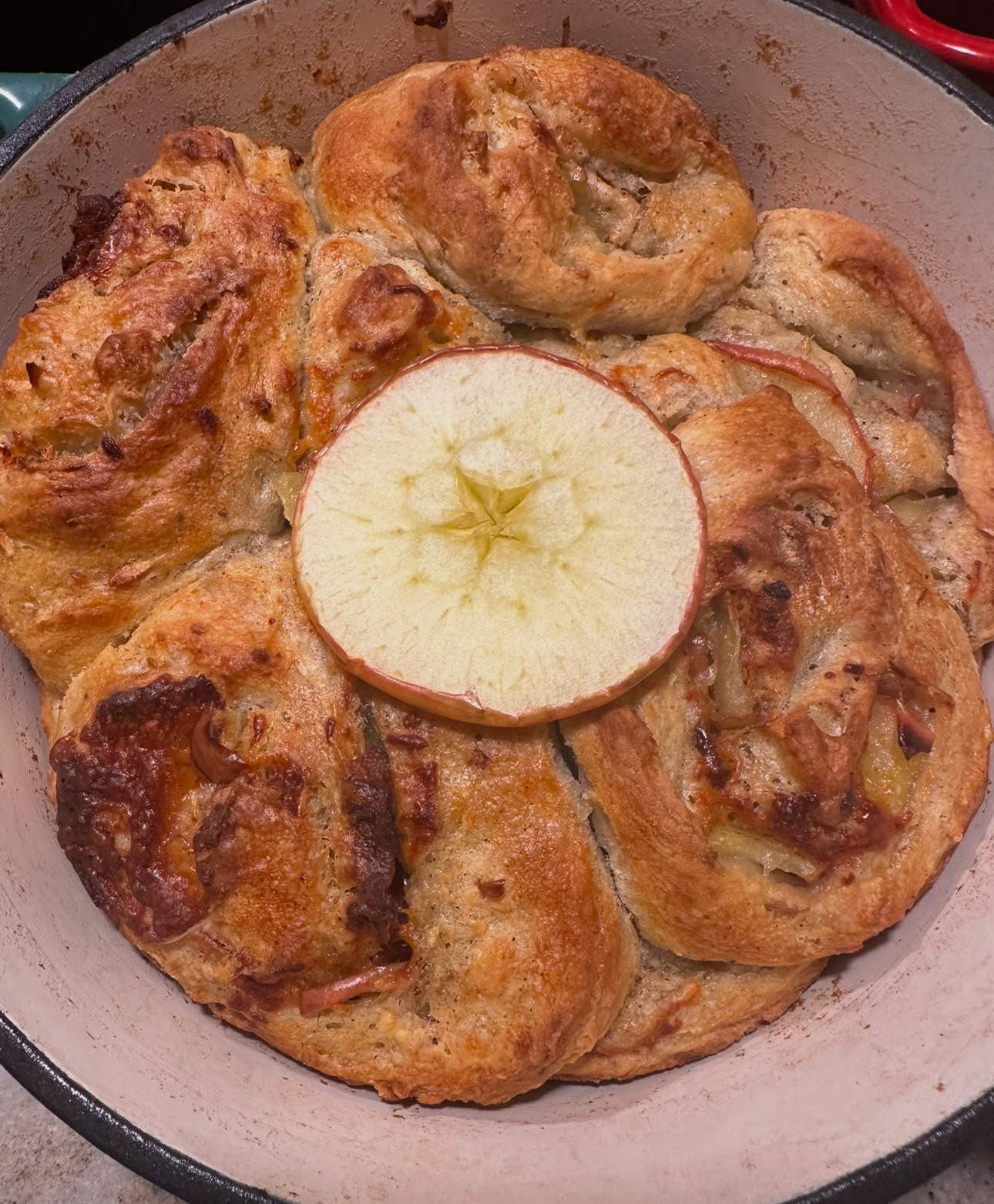Designed as a pull-apart round, this loaf makes sharing easy and enjoyable. Rolled and sliced in a cinnamon roll style, it’s as beautiful as it is delicious. And don’t miss the apple slice on top—that’s Mother Nature’s Love Note, a shining star at the center of the slice, reminding you of life’s little joys.